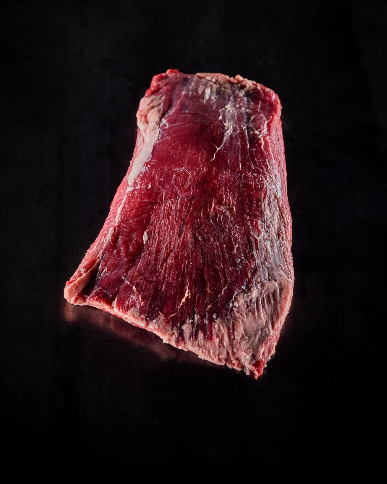 Flanksteak quer zur Faser in 2 Stücke schneiden (passend für den Beefer)