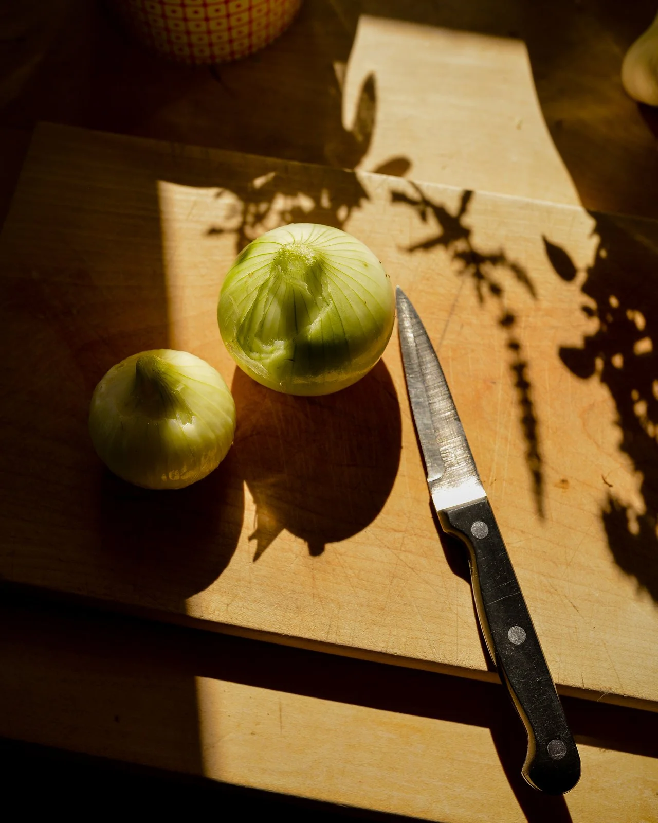 Eine Zwiebel und eine Chili fein würfeln und in Olivenöl braun braten, gegen Bratende 2 gehackte Knoblauchzehen kurz mitbraten, alles in eine Schüssel füllen